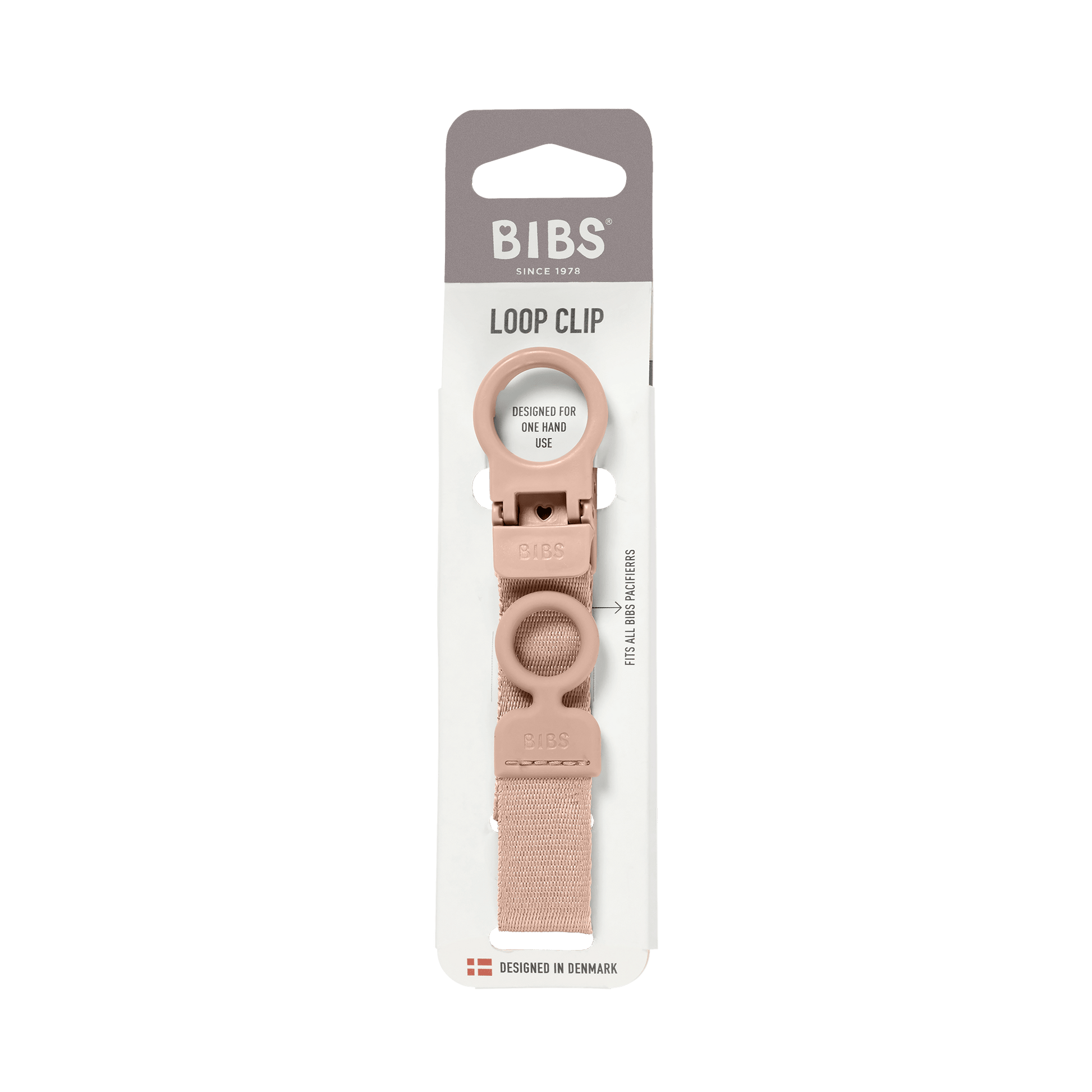 مشبك اللهاية BIBS Loop Clip بلون الوردي الفاتح (Blush) هو حامل عملي وأنيق مصمم للاستخدام بيد واحدة. يساعد هذا المشبك المبتكر في الحفاظ على لهاية طفلك نظيفة وآمنة وفي متناول اليد دائمًا، مما يمنع سقوطها على الأرض أو فقدانها.