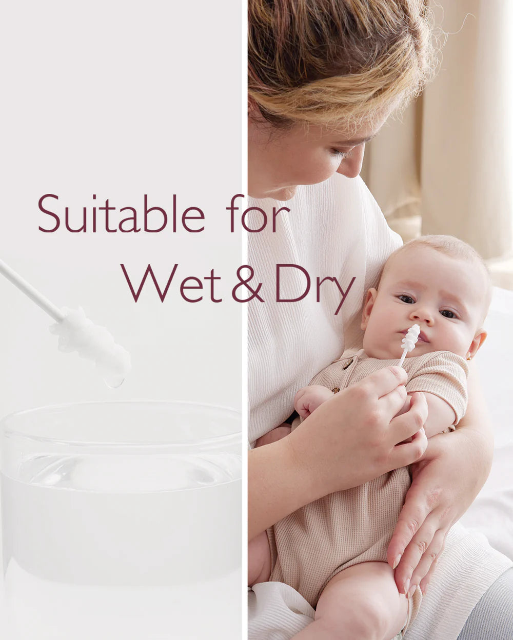 رأس قطني ناعم بدون نكهات أو كحول – مناسب للفم الحساس للأطفال.