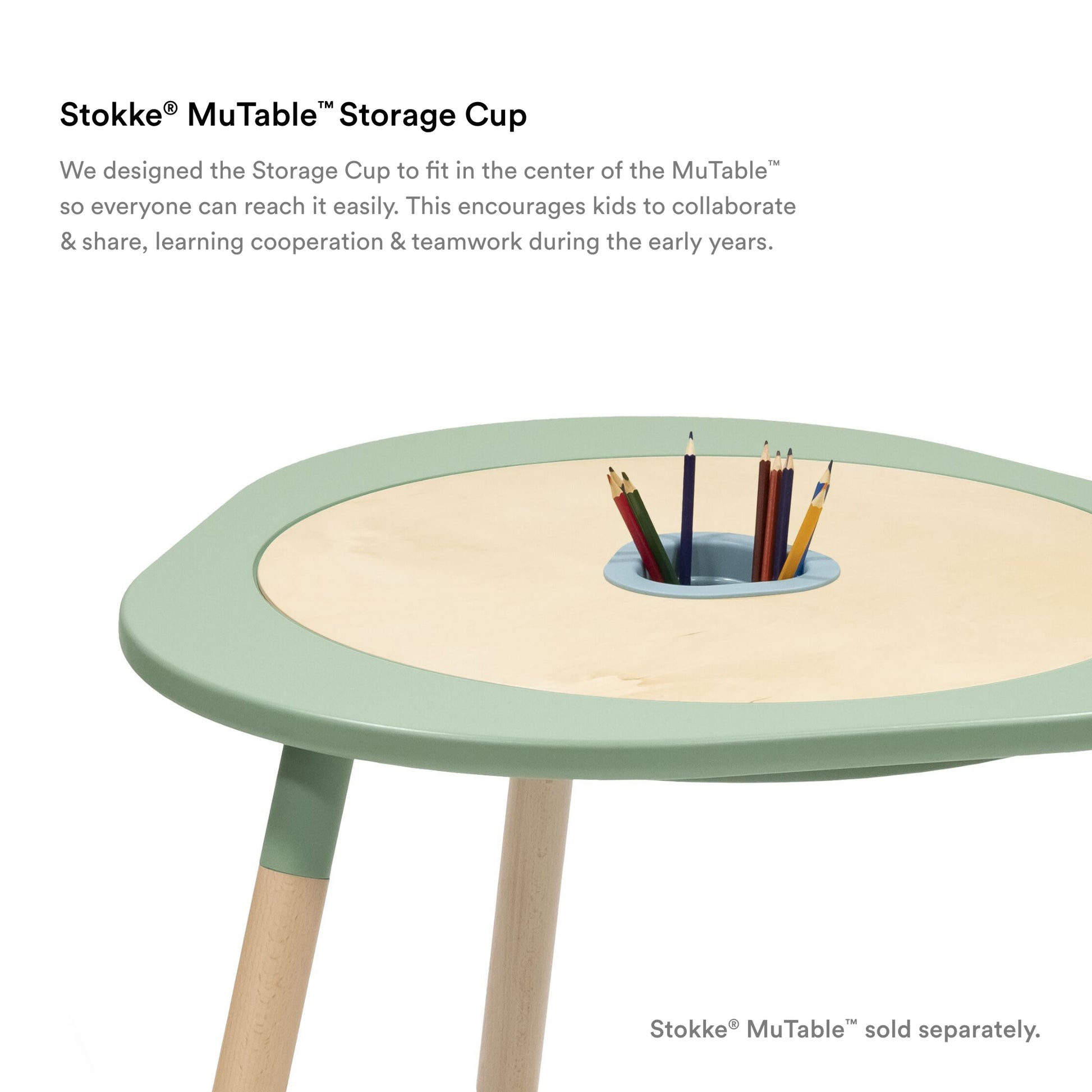 - يمكن استخدام Stokke® MuTable™ Storage Cup مع Stokke® MuTable™ Play Table لتخزين أقلام التلوين، الأقلام الرصاص، الماركرز، والألعاب الصغيرة.