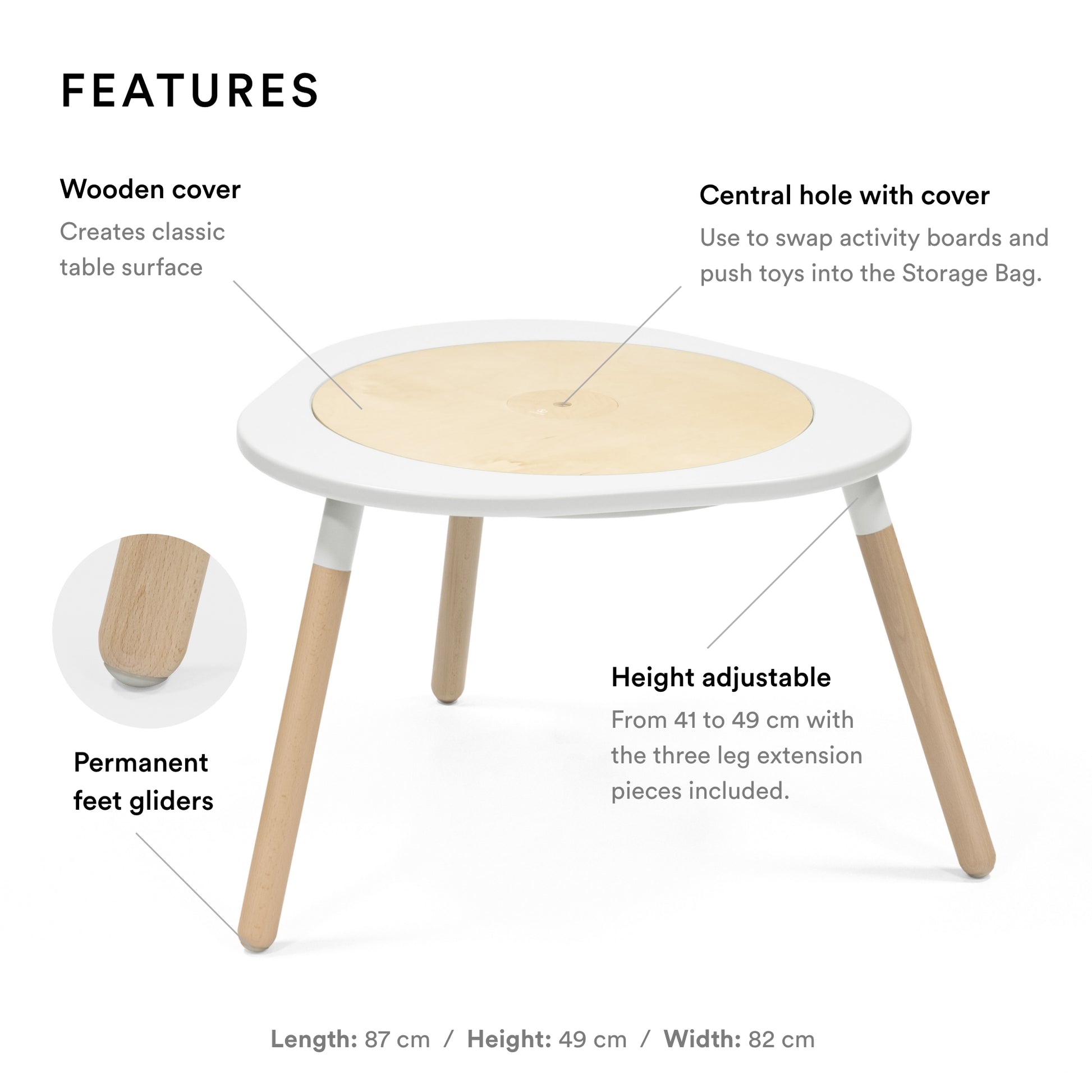 - توفر Stokke® MuTable™ Play Table أنشطة تناسب جميع مراحل النمو، من الرضيع إلى الطفل الدارج ومرحلة ما قبل المدرسة وما بعدها.
