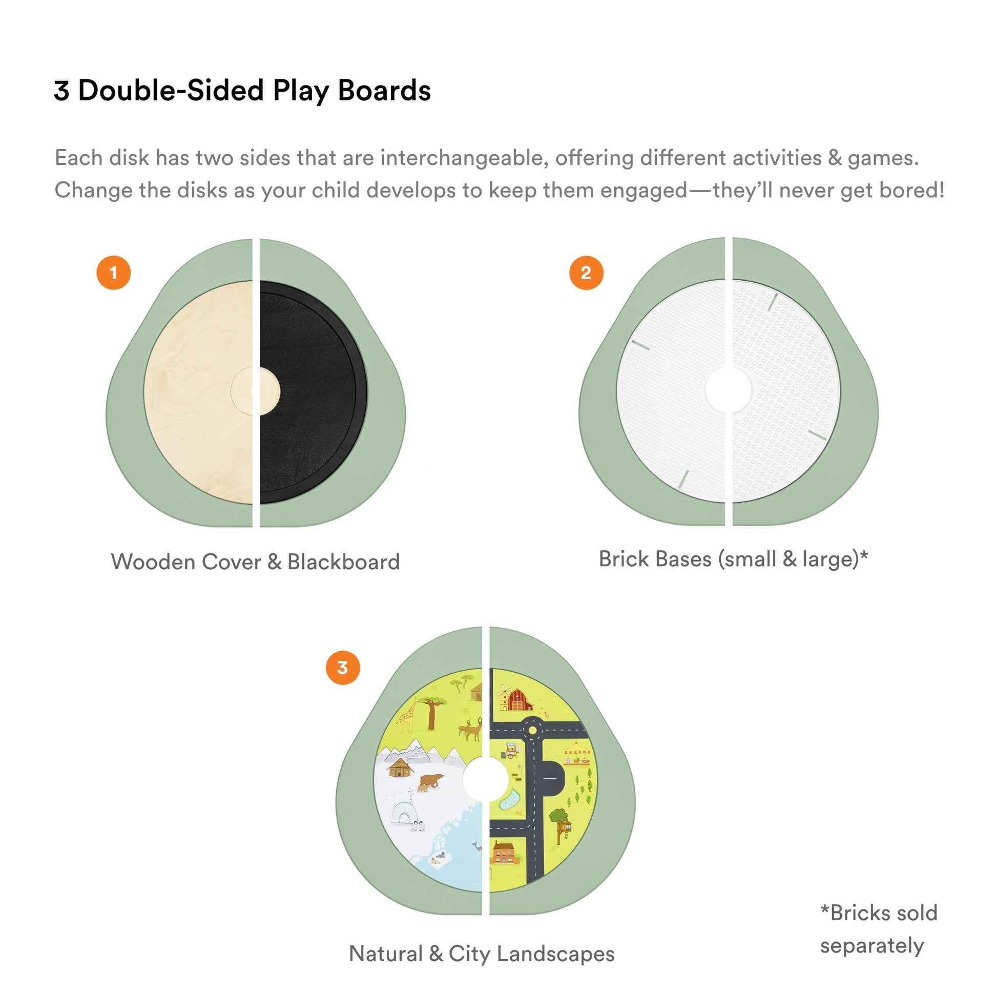 - تأتي الطاولة مع 3 ألواح أنشطة جذابة مزدوجة الوجه.