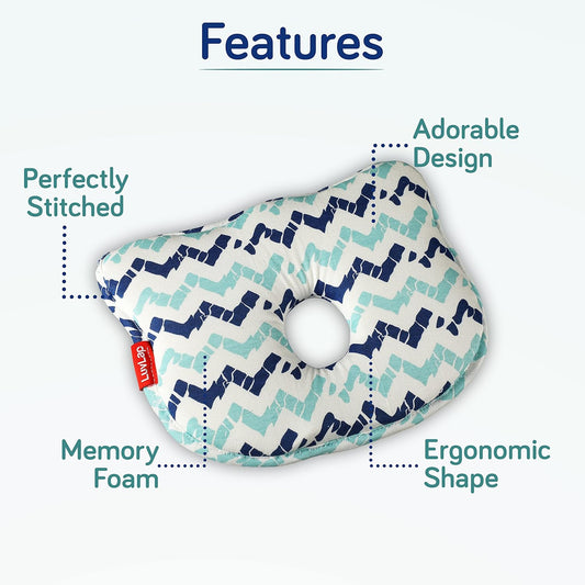 Luv Lap - Baby Memory Foam Head Pillows Teddy - Lines Blue