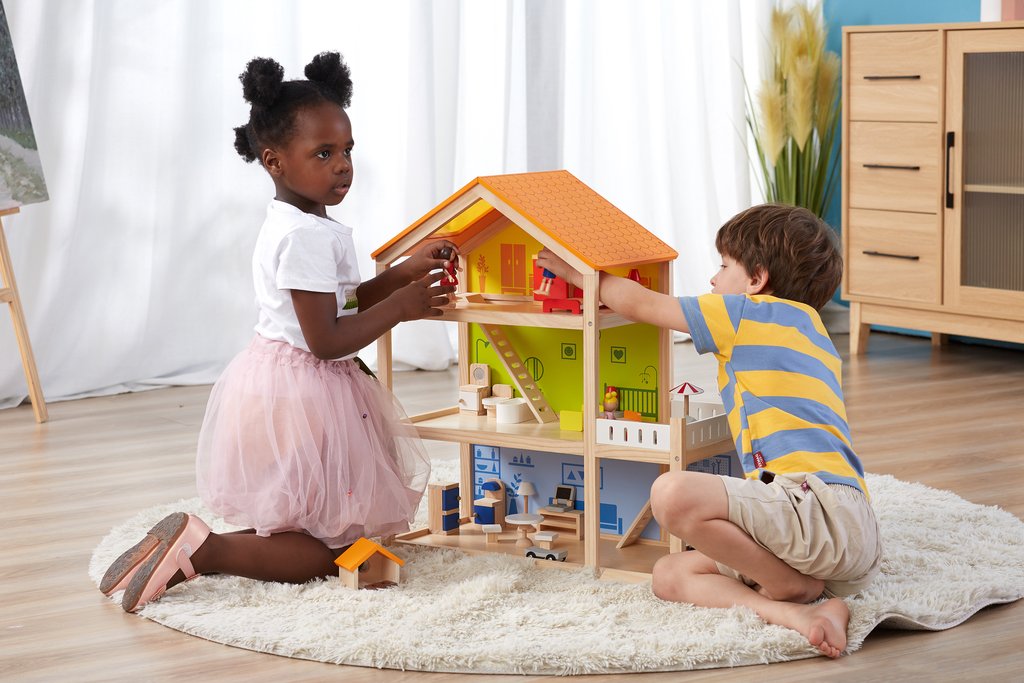A beautiful dollhouse, perfect place for toys and figures to live, sparking imaginative play times and hours of fun for little ones. It will help to improve children's social skills, develop and train their imaginative and creativity thinking.