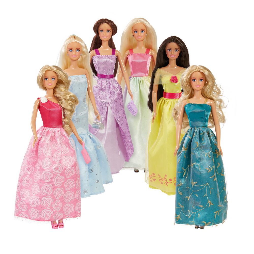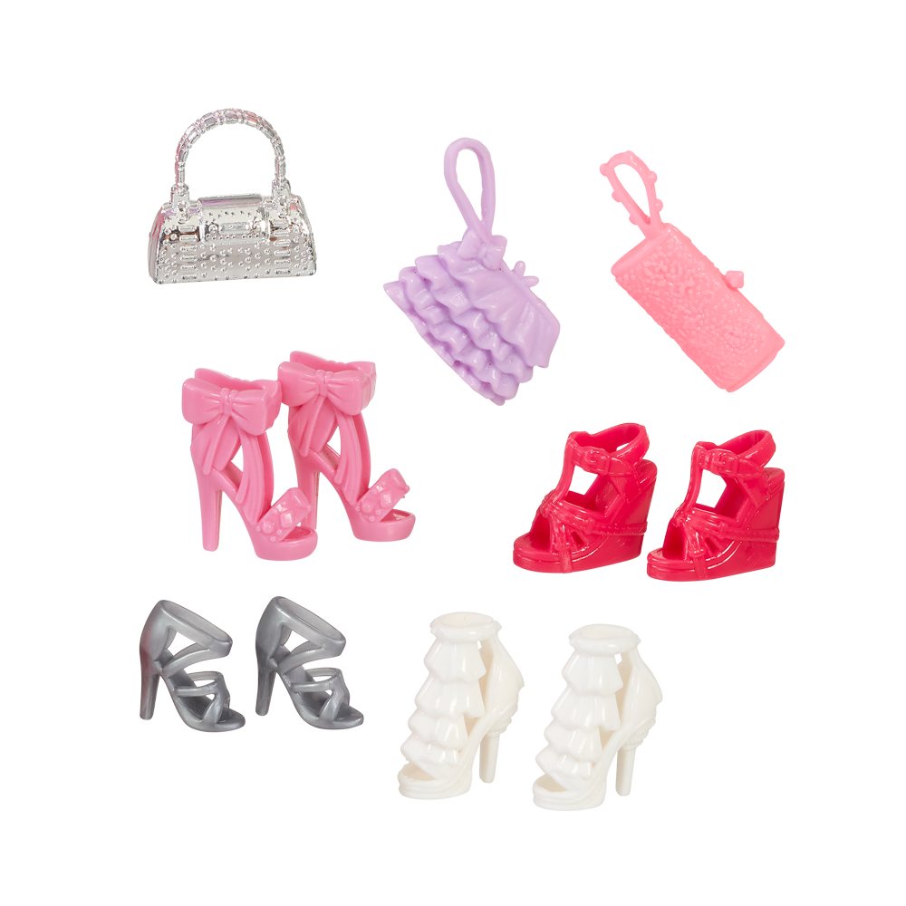 - Includes: 1x fashion doll, 6x outfits, 4x pairs of shoes, 3x handbags and 1 pair of earrings