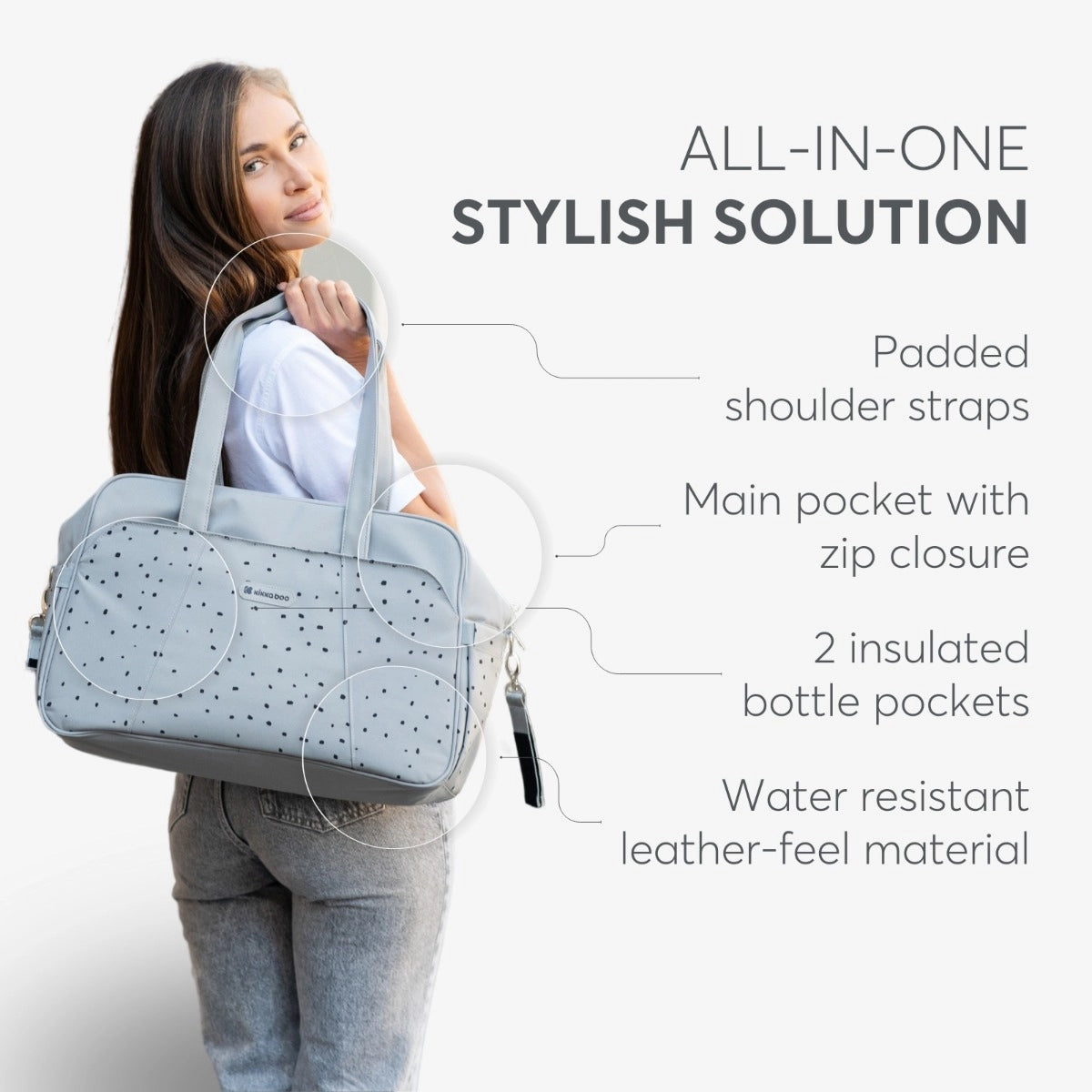 • Organazing pockets for diapers and clothes.