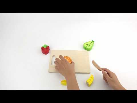 Set includes an Orange, a Banana, a Strawberry, a Pear and 1 Wooden Knife to make a healthy food. Cut food in half or several pieces, and fit them back together again with Velcro.