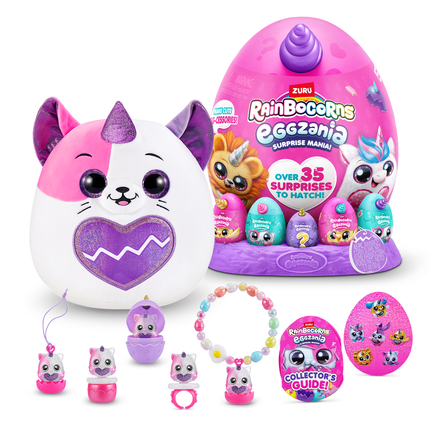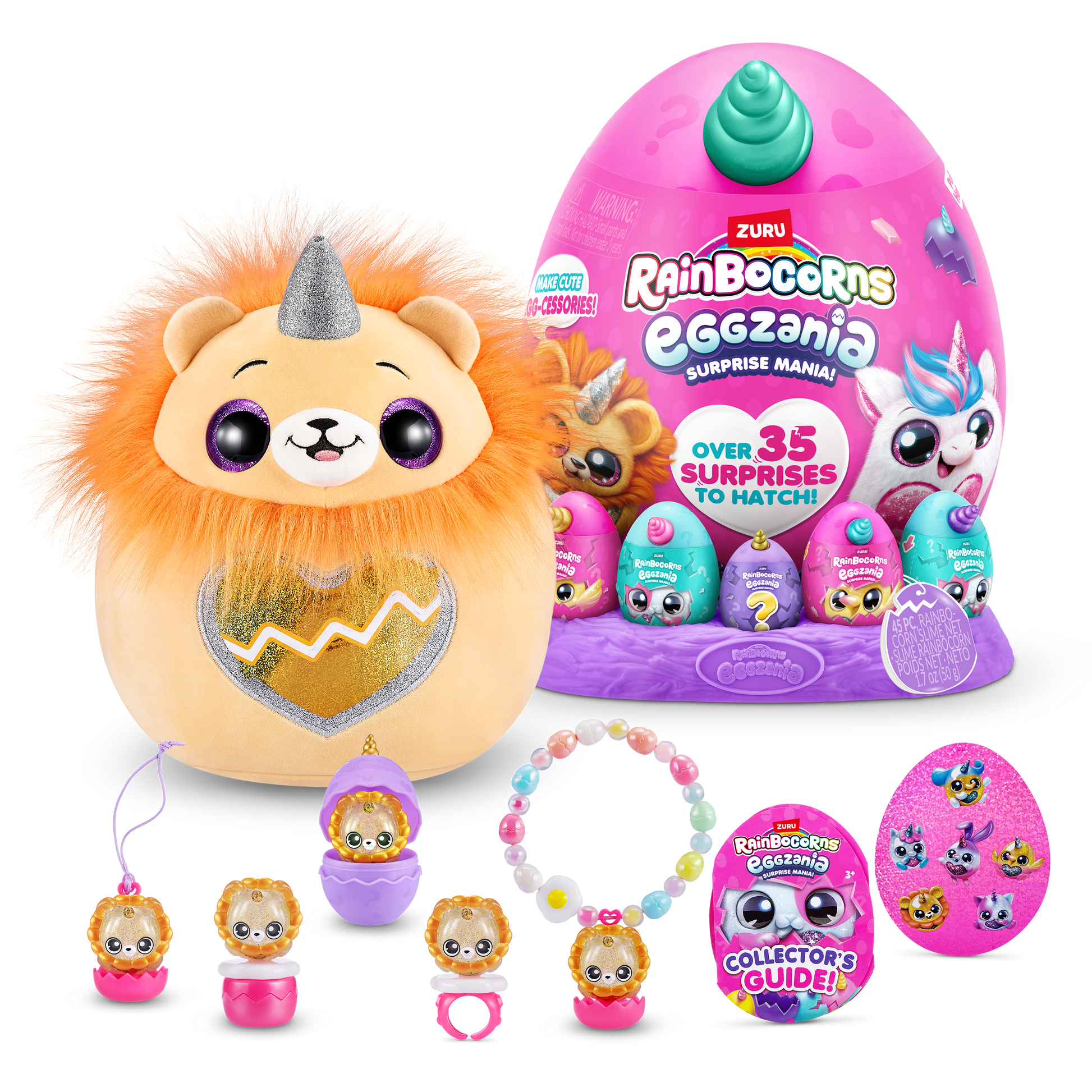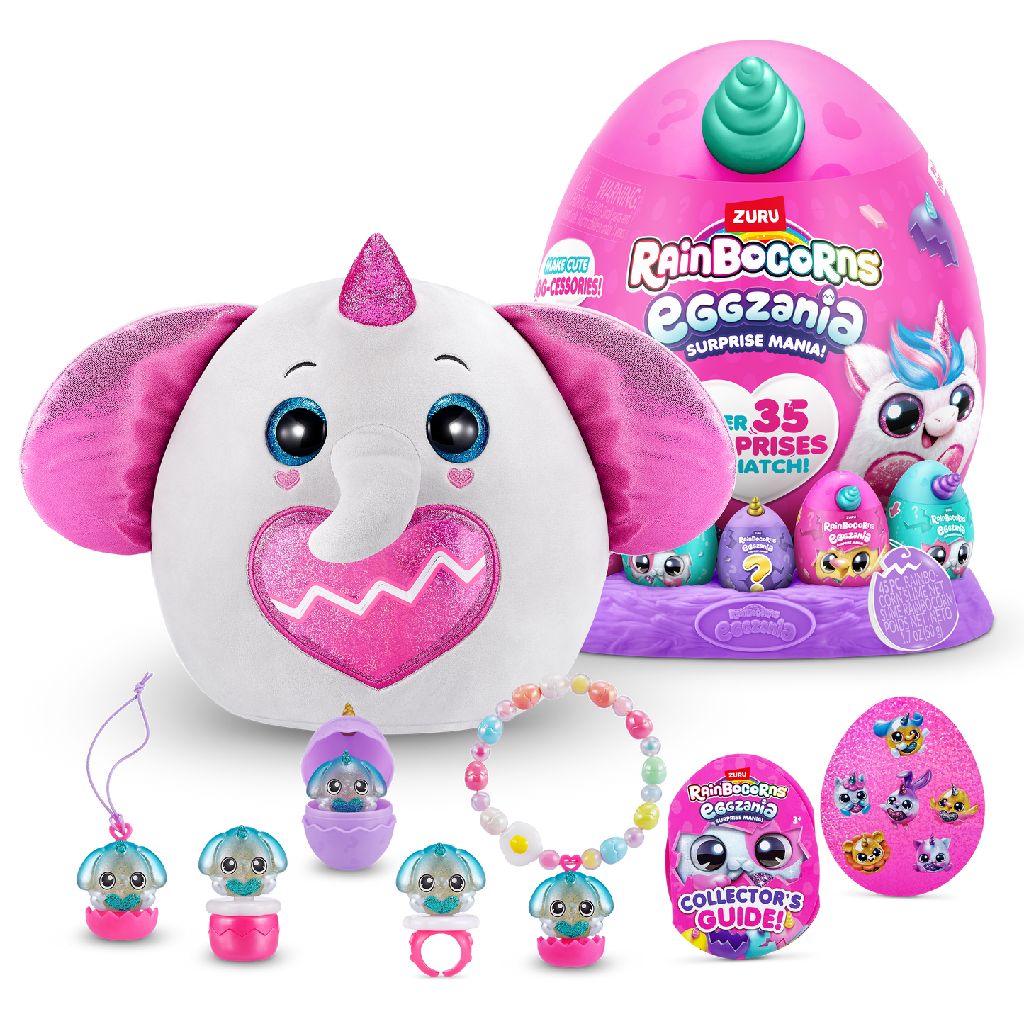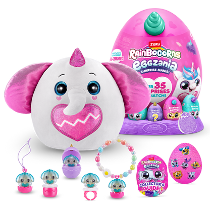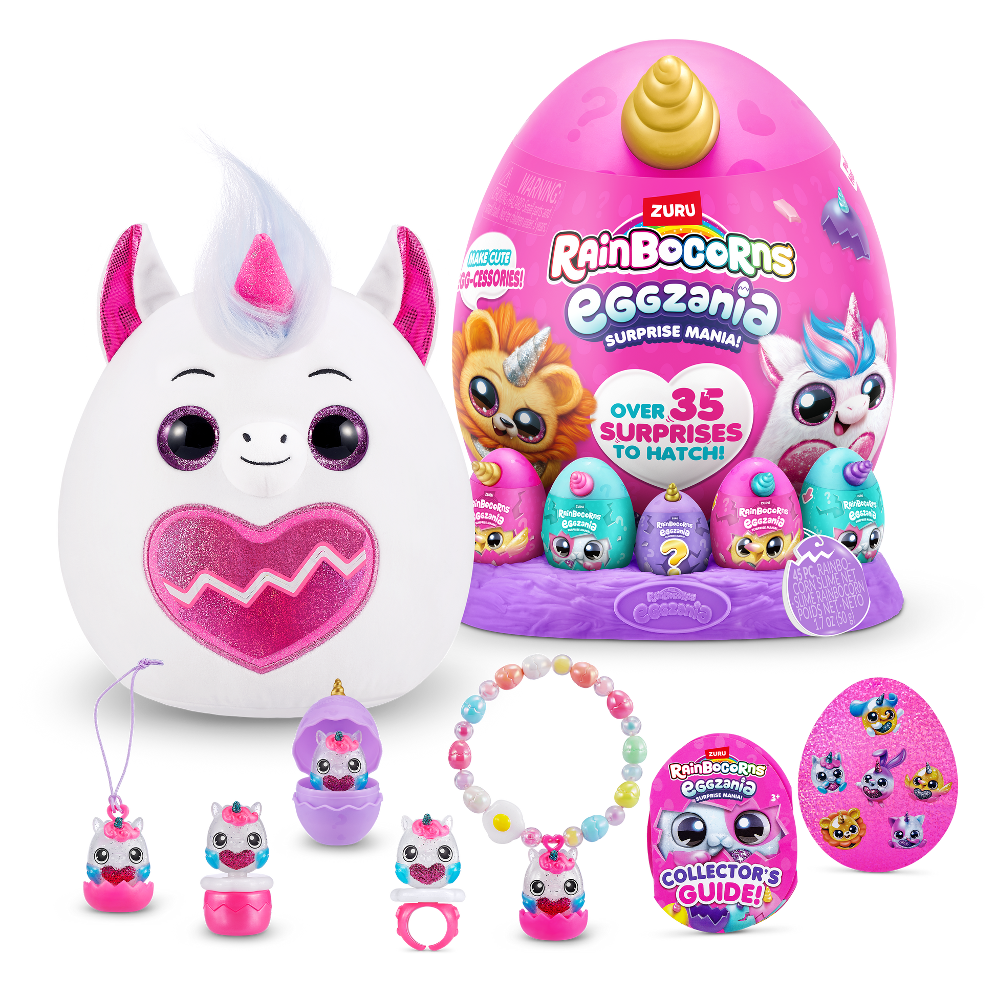 20+ Surprises to Discover!: Rainbocorns Eggzania is packed with over 20 unbeatable surprises! Crack into your egg to meet your new Eggzania plush, complete with matching Yolkie, 5 mini egg surprises, Yolkie slime, Yolkie jokes and wearable accessories like rings, stamps, bracelets, and stickers! This egg is oozing with oh so adorable surprises waiting to be hatched!