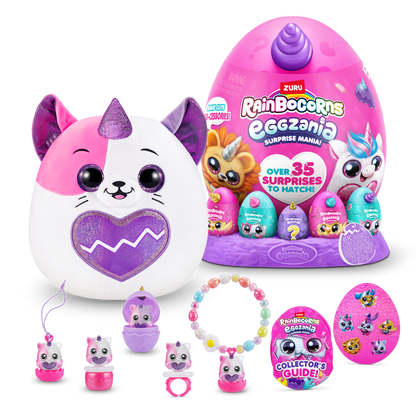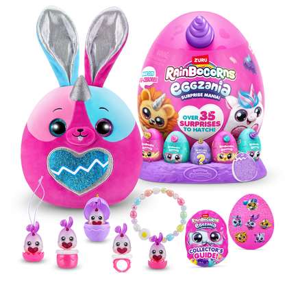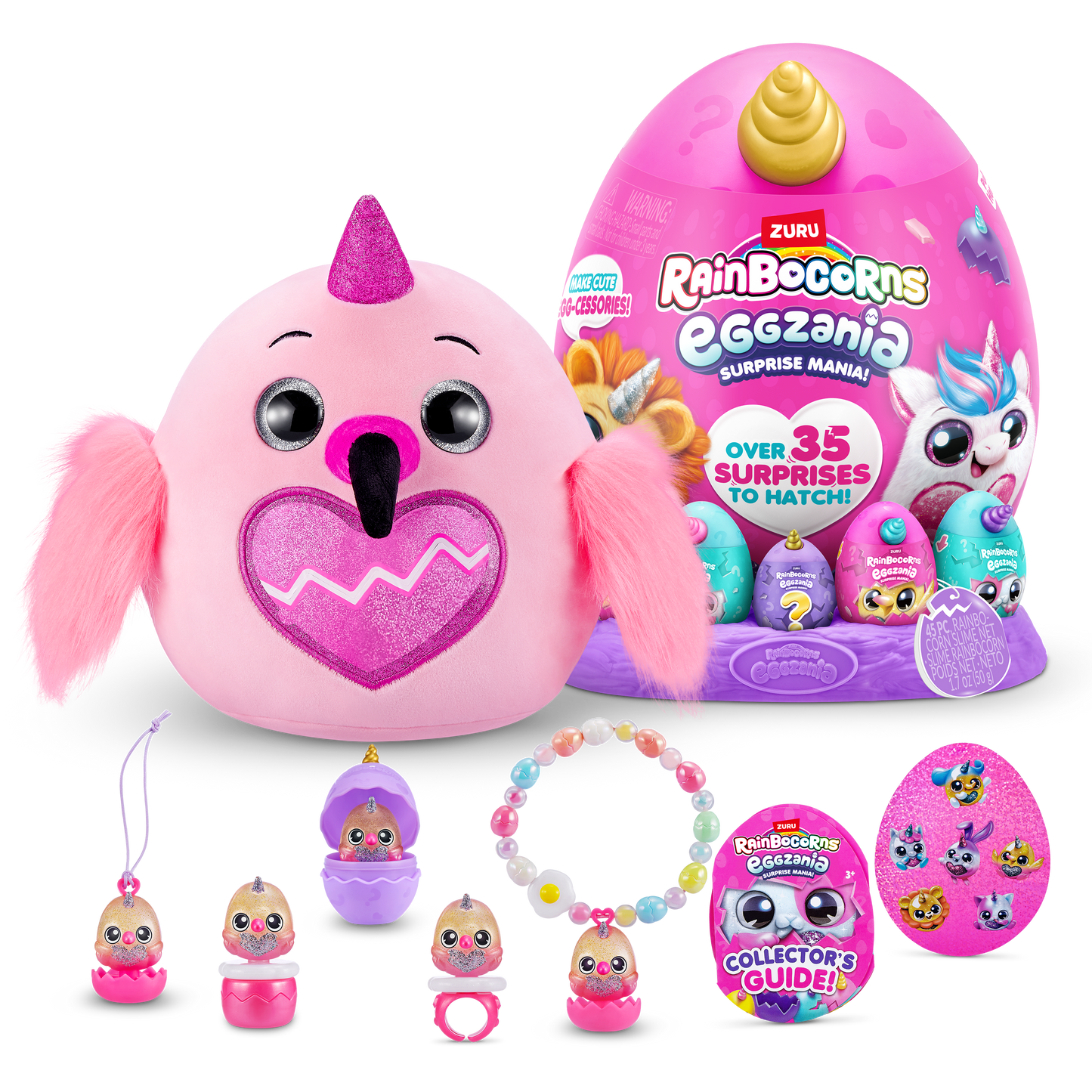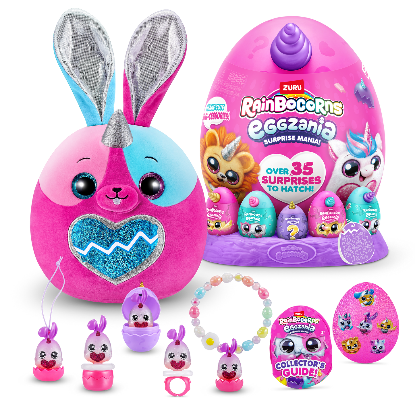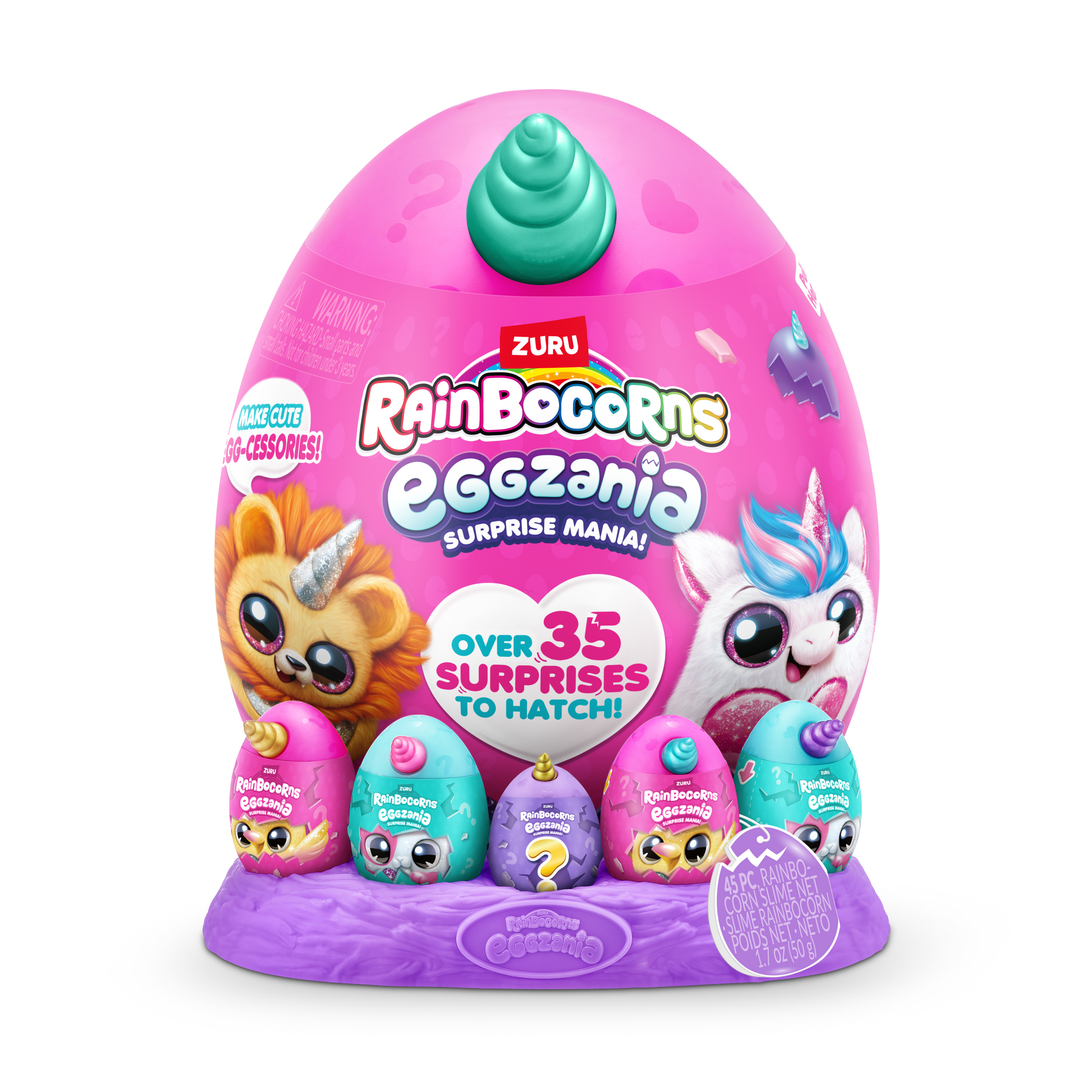 20+ Surprises to Discover!: Rainbocorns Eggzania is packed with over 20 unbeatable surprises! Crack into your egg to meet your new Eggzania plush, complete with matching Yolkie, 5 mini egg surprises, Yolkie slime, Yolkie jokes and wearable accessories like rings, stamps, bracelets, and stickers! This egg is oozing with oh so adorable surprises waiting to be hatched!