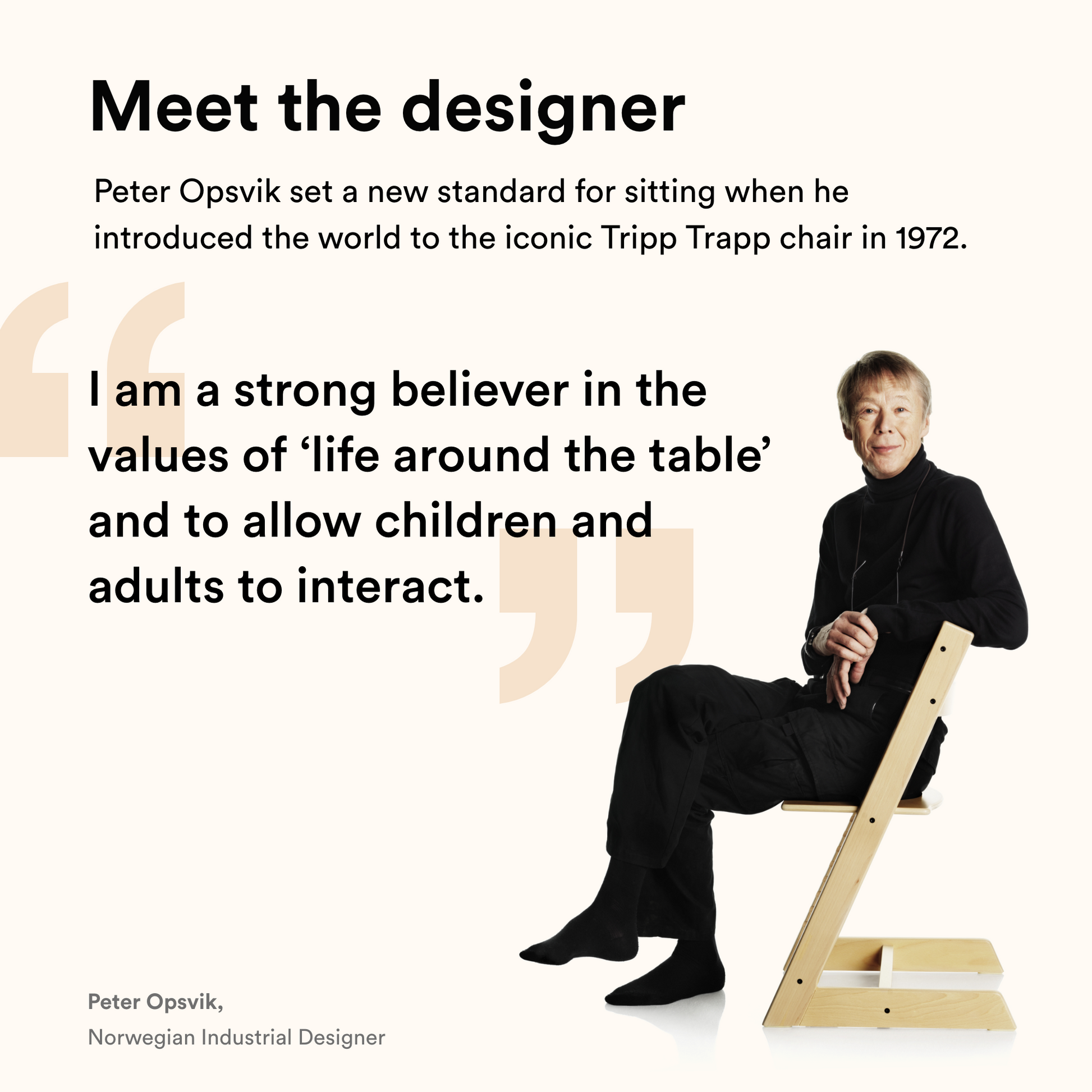 - Tripp Trapp® is an ingenious chair designed by Peter Opsvik that revolutionized the children's chair category in 1972, when the Tripp Trapp® was first launched.